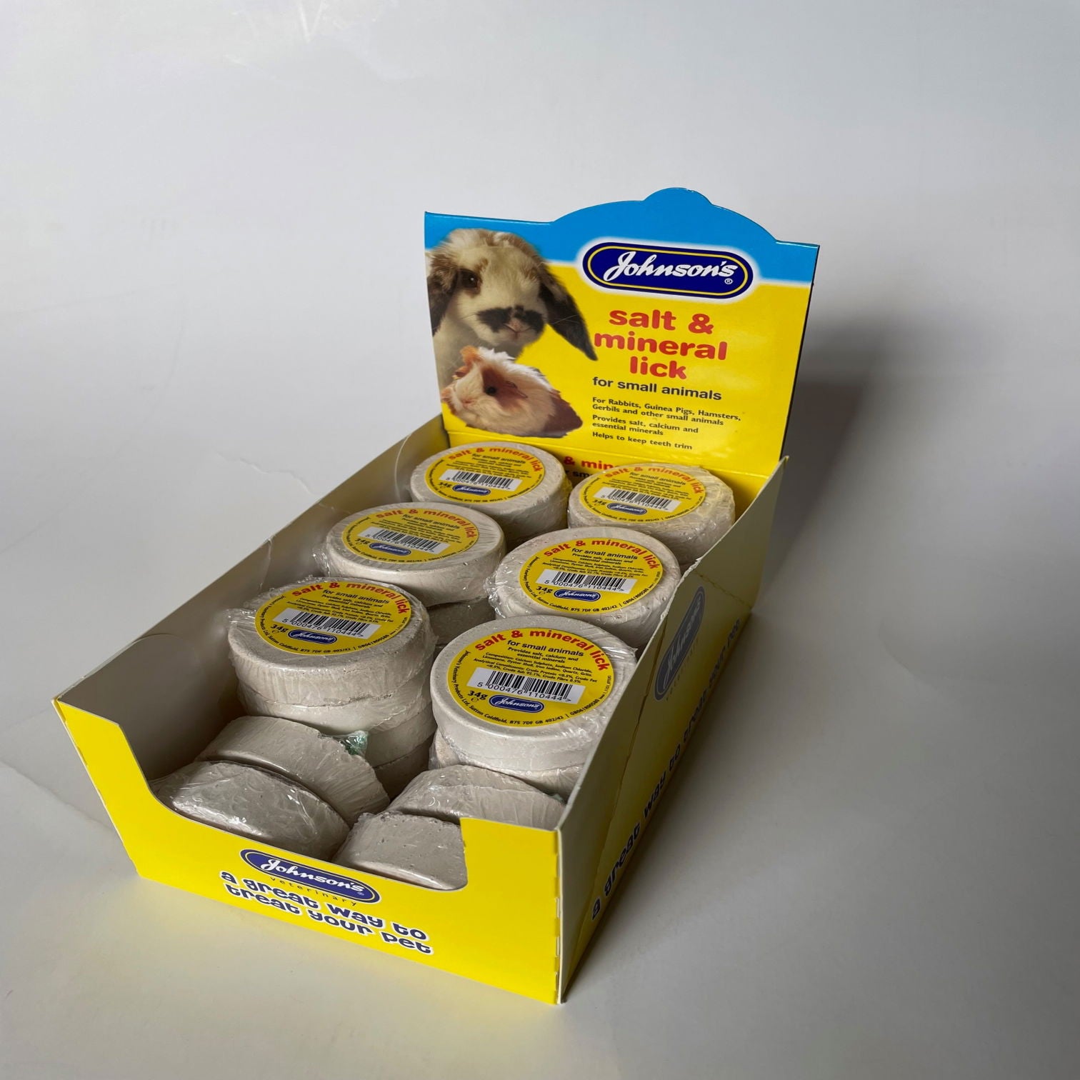 "Provides salt, calcium and essential minerals. Helps to keep teeth trim Suitable for rabbits, guinea pigs, hamsters, gerbils and other small animals. 34g"