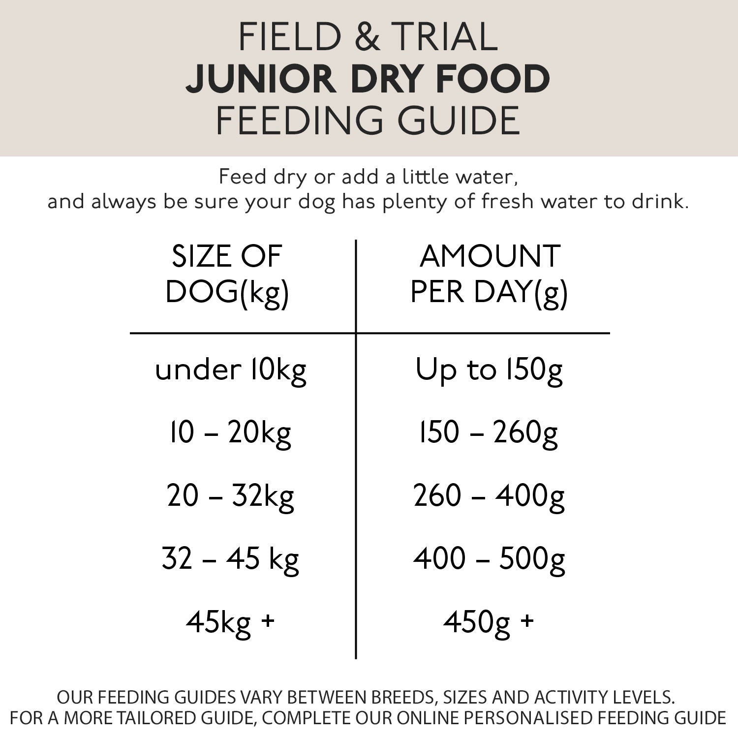 New Field & Trial Junior has been specially formulated for young working dogs up to 18 months of age. It contains all of the essential vitamins, minerals and trace elements for this important period of continued growth and development. From approximately 6 months of age (depending on breed), Field & Trial Junior follows on from Field & Trial Puppy to act as the link between the puppy and adult stage.
