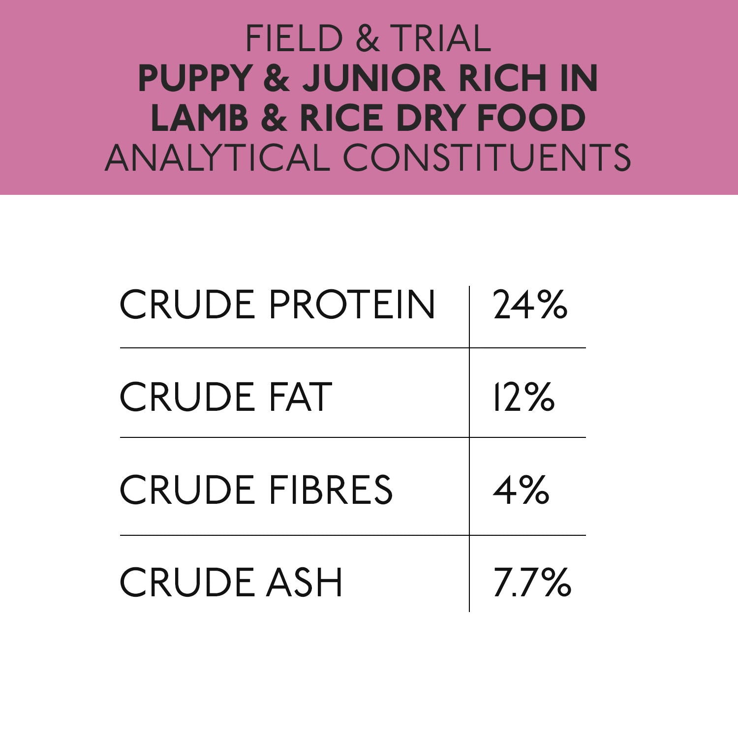 New Field & Trial Puppy Lamb and Rice is specifically formulated for puppies and young working dogs from approximately 3 weeks up to 9 months of age. It is completely hypoallergenic and contains MOS and FOS to help maintain a healthy digestive system.