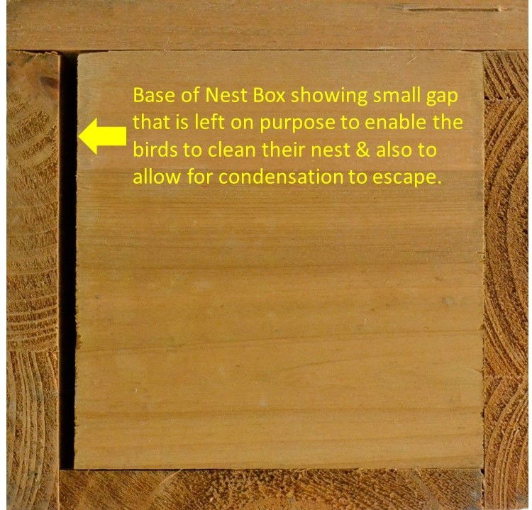 Small gap in the base so the birds can easily clean the box out.