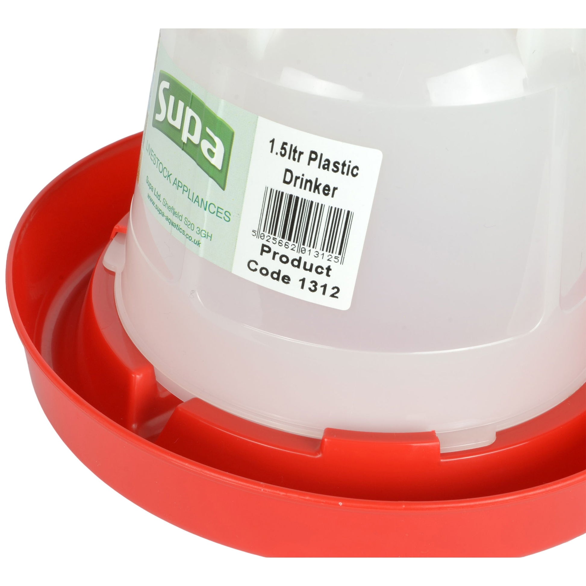 Supa Red & White Drinker 1.5 Litre is a robust gravity fed drinker.