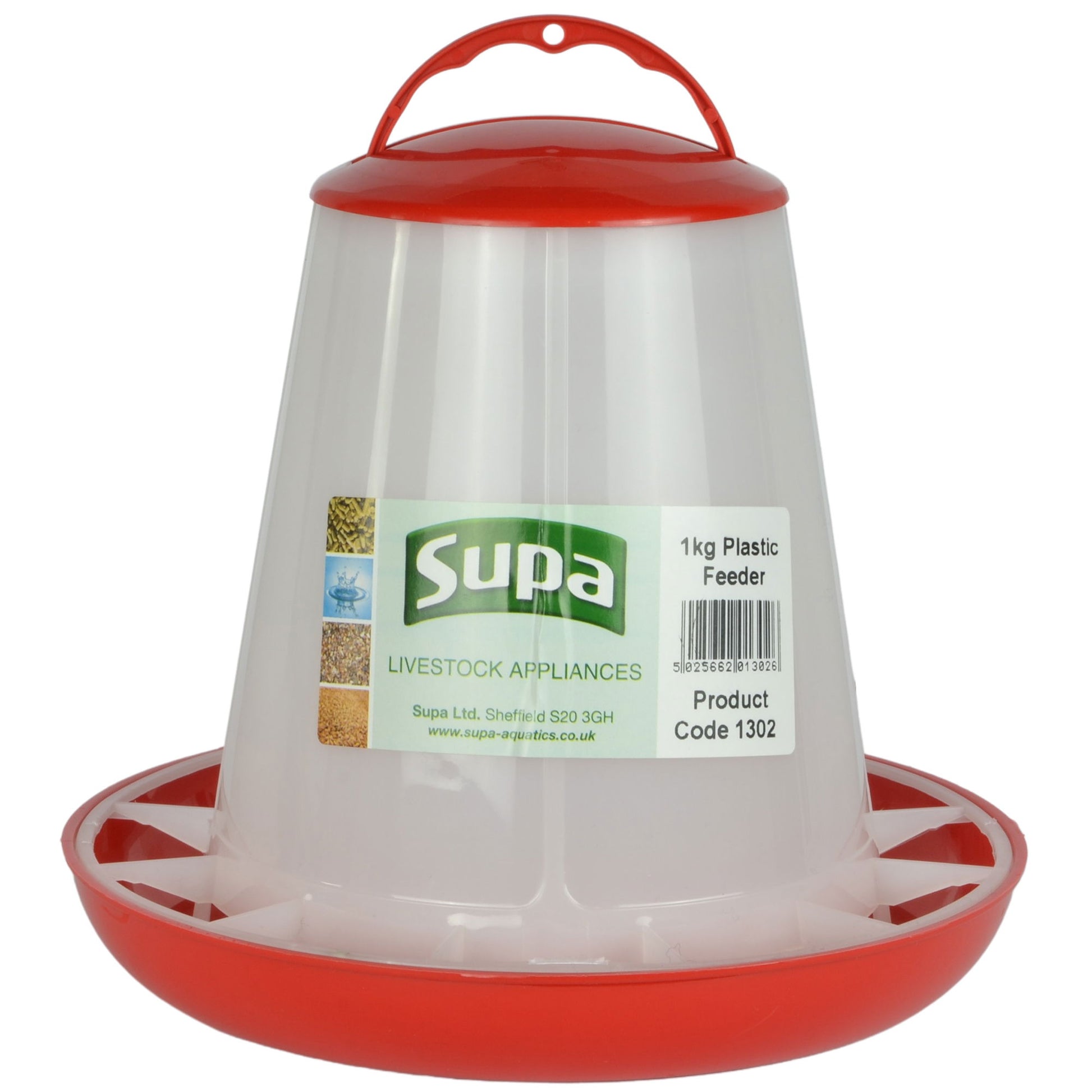 Supa Red & White Feeder 1 kg is a robust gravity fed feeder.