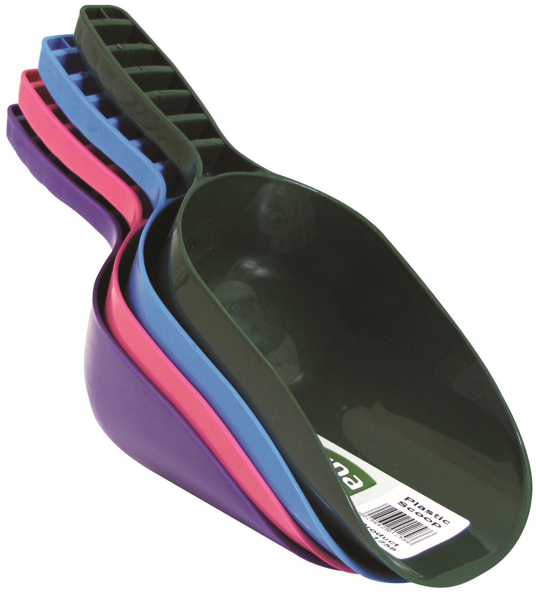High quality durable plastic poultry feed scoop that is designed to ensure the easy transfer and pouring of mash, grain or pellets into food containers.