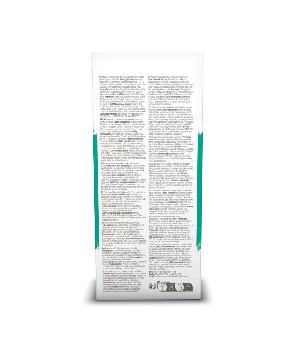 Science Selective Skin & Coat Care supplements are formulated to help support healthy skin and a glossy coat, with nutritious spinach, Vitamin C, Timothy hay, and nourishing linseed for Omega 3 & 6. Composition Wheat flour, Ground timothy hay, Ground dried locust beans, Dried spinach (4%), Linseeds (4%), Soya oil, Ground peas. Nutritional additives Vitamin C 3,500mg/kg. Guaranteed Analysis Crude protein (min) 8.0% , Crude fat (min) 2.0%, Crude fibre (max) 12.0%, Moisture (max) 10.0%. Feeding Guide Feed as a supplement to complement your pets regular diet. Feed 1-2 treats per day. Fresh water should always be available.