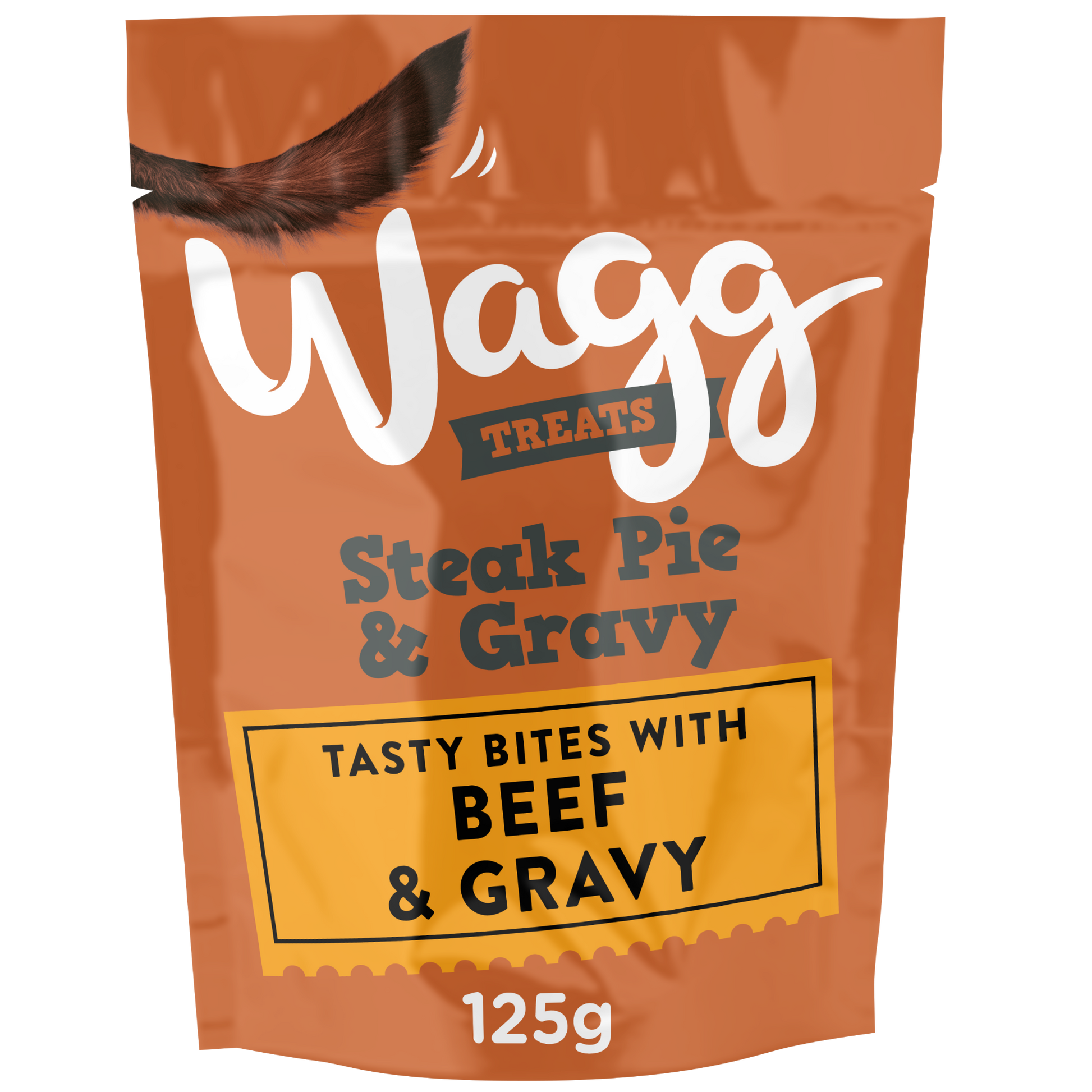 Wagg Steak Pie with Gravy is a Delicilious treat for your dog, Oven baked and semi moist treat enriched with Vitamins and Mineral with no added sugar Ingredients: Wheat, Beef meal (26%), Glycerine, Chicken Gravy 4%, Vegetable Oil, Minerals, Gelatine, Whey powder.